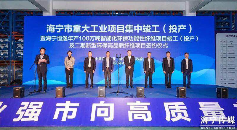 4月15日上午,海宁市重大工业项目集中竣工(投产)仪式暨海宁恒逸年产100万吨智能化环保功能性纤维项目竣工(投产)及二期新型环保高品质纤维项目签约仪式在海宁恒逸新材料有限公司隆重举行,加快推进海宁“工业强市向高质量前进”。