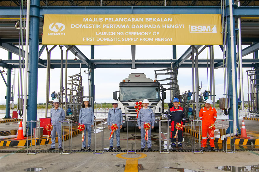 中国驻文莱大使于红、首相府部长兼财政与经济事务主管部长刘光明、发展部长苏海米、能源部长马特·苏尼以及恒逸实业(文莱)有限公司CEO陈连财、文莱壳牌销售公司(BSM)总经理诺沙费伊出席启动仪式,为首辆入站油罐车剪彩并视察装车站设施。
