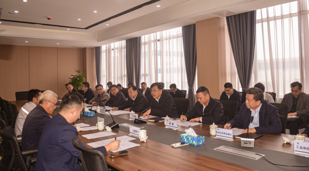 自治区政府副秘书长黄瀚、钦州市常务副市长钟恒钦、钦州市副市长徐科峰陪同,自治区金融办、自治区发改委、自治区工信厅、广西税务局、国家金融管理总局广西监管局、广西证监局等部门相关人员参加走访座谈。