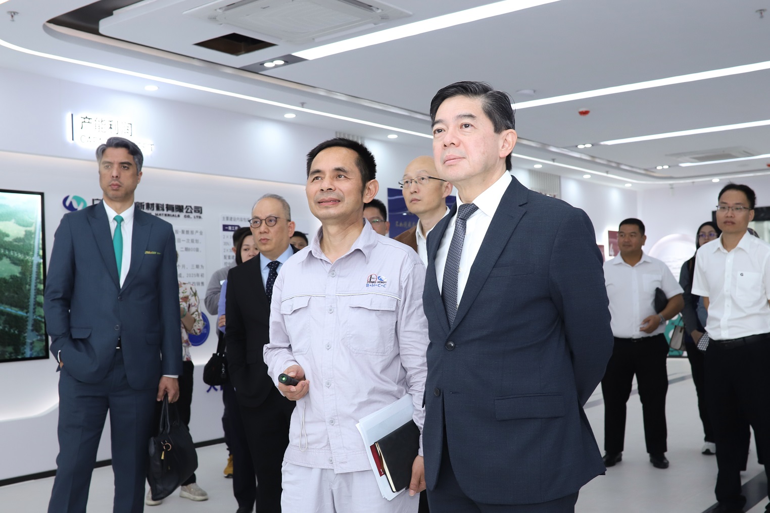 4月19日上午,文莱首相府部长兼财政经济部主管部长拿督刘光明率文莱政府代表团走访广西恒逸新材料有限公司,并开展座谈交流。文莱财政与经济部副常秘哈里斯、文莱经济发展局代理局长梁玉明及广西恒逸新材料有限公司常务副总刘拥军、恒逸实业(文莱)有限公司董事会秘书兼行政总监李鹏陪同。