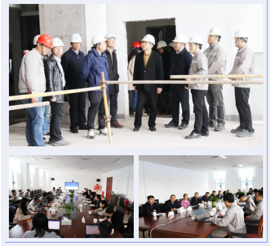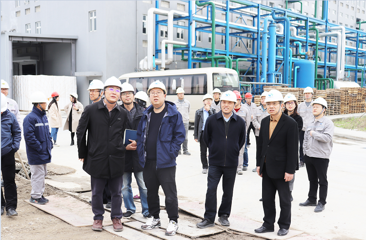 邱奕博一行先后实地走访了海宁恒逸聚合A、纺丝A车间和恒澜科技中试项目现场,深入了解装置建设和安装进度等情况,并在中控室会议室召开的座谈会上听取了海宁恒逸总经理吴忠亮、恒澜科技副总经理王韩关于海宁恒逸新材料一二期项目和恒澜科技项目建设进度、生产管理以及需要协调支持事项的汇报。