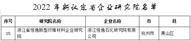 恒逸研究院获浙江省企业研究院认定
