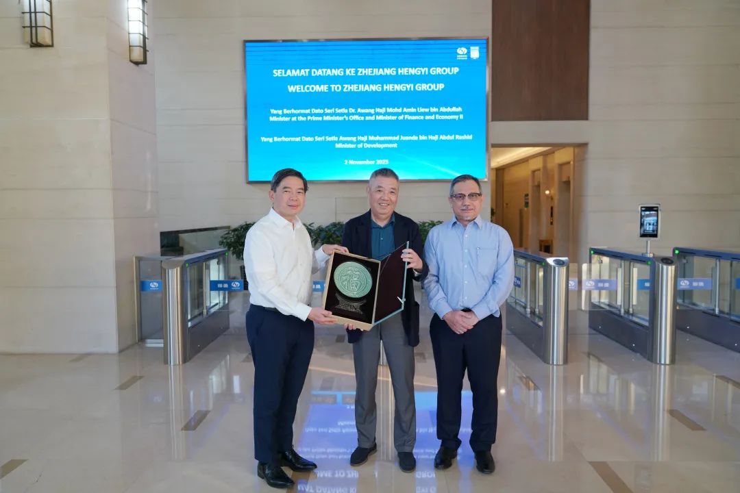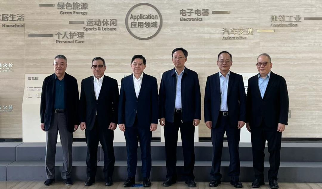 11月1日,文莱首相府部长兼财政经济部主管部长拿督刘光明、文莱发展部部长拿督朱安达率文莱政府代表团,到位于山东烟台的万华化学总部参观交流。恒逸集团董事长邱建林陪同。