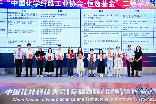 其中,由浙江恒逸石化研究院有限公司、浙江巴陵恒逸己内酰胺有限责任公司、海宁澜钛新材料有限公司、东华大学材料科学与工程学院和纤维材料改性国家重点实验室共同选送的《阳离子可染抗紫外聚酰胺纤维制备与性能研究》荣获一等学术论文;浙江恒逸石化研究院有限公司选送的《纤维级氧化锌抗菌聚酯的结晶行为与流变性能研究》荣获二等学术论文。