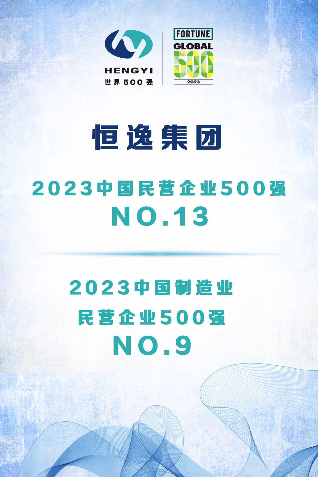 9月12日,全国工商联发布2023中国民营企业500强榜单。榜单显示,恒逸集团以2022年度38566157万元营收,位列2023中国民营企业500强第13位(较上年前进4位),2023中国制造业民营企业500强第9位(较上年前进2位),连续19年跻身中国民营企业500强前50强。