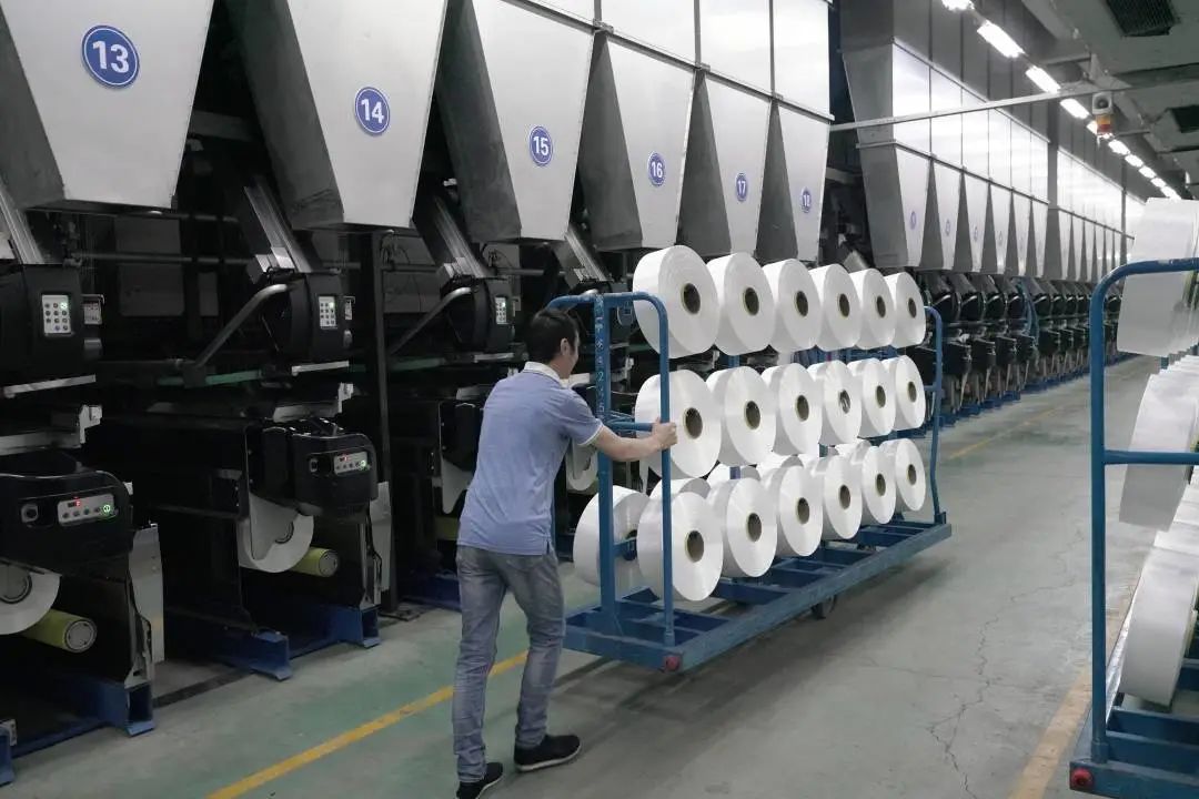 走进恒鸣化纤长丝生产车间,“逸泰康”生产线正开足马力运作,隆隆的机器声中,工人们正忙而有序地开展生产作业。“转钛准备工作充分合理,转钛过程波动少、节奏佳,实现产量品质双提升,产品附加值高于常规产品,具有巨大市场价值潜力。”恒鸣化纤总经理梅兆林介绍说。