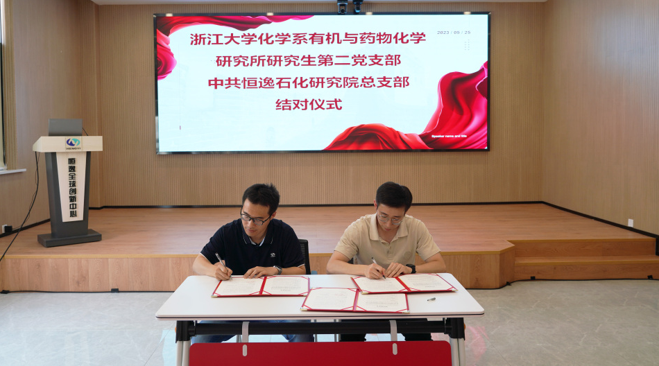 525日,浙江大学化学系有机与药物化学研究所研究生第二党支部和中共恒逸石化研究院总支部在恒逸研究院举行结对仪式,强化落实产教融合、校企合作以及党建交流。
