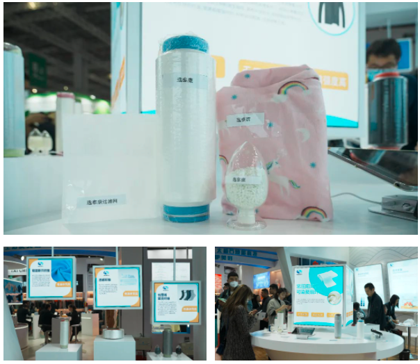 本次展会中,恒逸以沉浸式、场景化的呈现方式,重点展示了部分适用于工业化生产的自主研发产品,包括绿色健康聚酯产品“逸泰康”、阻燃和抗菌聚酯纤维、生物基PTT纤维和抗污尼龙等,科技、绿色、健康、时尚相互辉映,从源头树立起行业高质量发展“风向标”。