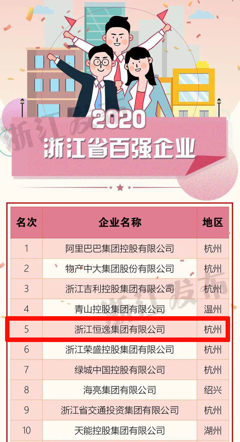 10月21日,浙江省企业联合会、省企业家协会、省工业经济联合会正式发布《2020浙江省百强企业》榜单,这是自2003年以来连续第十八次向社会公开发布年度浙江省百强企业榜。