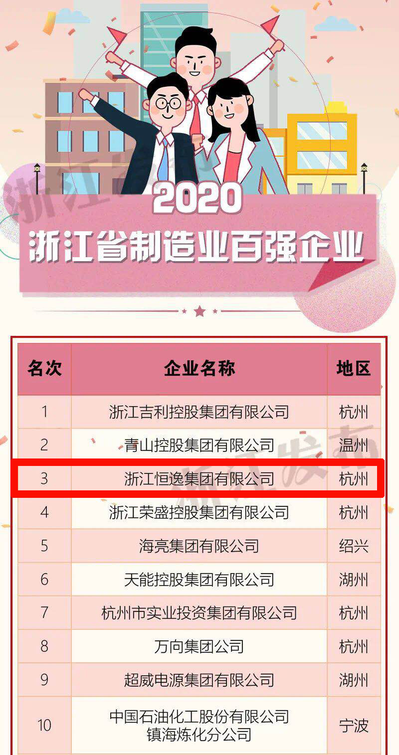 恒逸再次入围浙江企业“双十强”