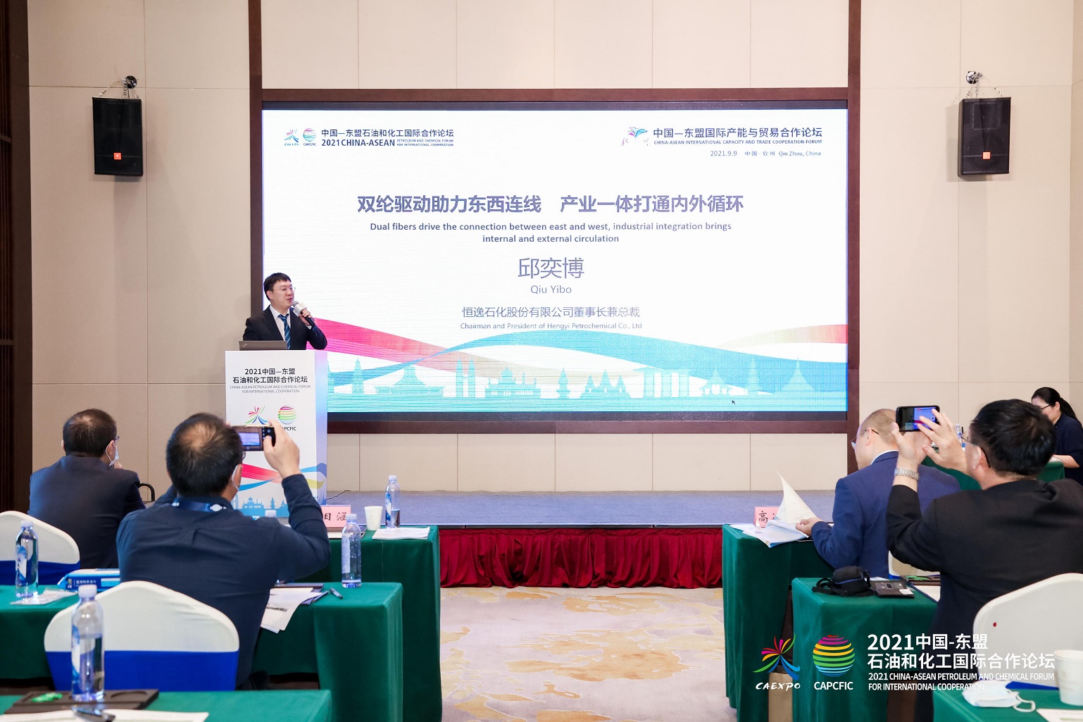 9月9日,以“聚焦RCEP新机遇 共创绿色新未来”为主题的2021年中国—东盟石油和化工国际合作论坛在广西钦州正式开幕。本次论坛是第18届中国—东盟博览会的重要配套活动,设CEO闭门会议、全体大会、平行论坛和配套考察,来自政府部门、知名石化企业、智库专家和国际组织代表近千人“线上线下”参加。恒逸石化董事长兼总裁邱奕博受邀参加本次论坛。