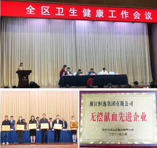 30日上午,萧山区人民政府召开全区卫生健康工作会议,总结了2020年全区卫生健康工作,动员部署2021年重点工作任务。恒逸集团被授予萧山区无偿献血先进企业称号,并作为获奖单位代表在会上分享了恒逸集团无偿献血工作的开展情况与体会。自2002年以来,恒逸集团已经连续开展了19次大规模的员工集体献血活动,累计4752人次献血1272940毫升,曾多次被评为市、区两级无偿献血先进单位。2011年,恒逸集团率先在浙江省企业当中设立“无偿献血日”,将每年8月份第一个星期三确定为员工集体无偿献血日,无偿献血活动成为恒逸人回馈社会的一张有温度的公益名片。2021年是中国共产党成立100周年,也是恒逸集团无偿献血20周年。恒逸集团将一如既往地与社会各界共同携手,与萧山人民血脉相连,奉献热血演绎爱心接力,心系社会诠释恒逸担当,在新的历史起点上为高质量建设健康萧山贡献新的力量。