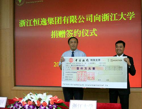 2007年9月,恒逸集团首次向浙大教育基金会捐赠1000万元,设立“浙江大学恒逸基金”,用于大学生的奖助学计划、教师科研教育奖励计划、资助与民营经济相关学科的建设以及与中国民营经济学术研究。2年多来,40名浙大贫困生得到助学金资助,12名本科生和6名研究生得到出境交流的资金支持,来自全国名校的40名学生获益来杭参加了全国大学生民营企业之旅;来自美国、法国、瑞典和世界银行的一些专家学者受聘浙大,担任讲座教授,进一步提升了浙大经济、化工等学科的师资水平;每年一次的“恒逸经济发展论坛”,受到了社会关注和好评。根据协议,本次捐赠的1000万元直接追加到“浙江大学恒逸基金”。