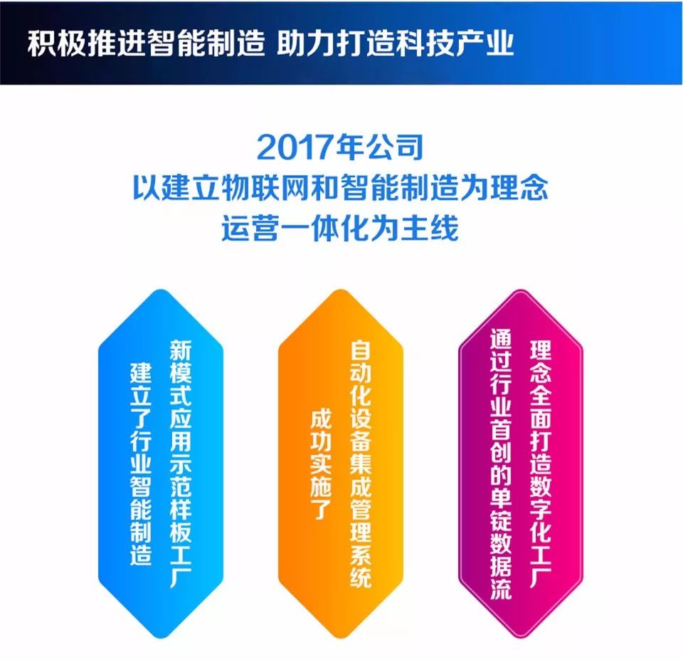 2017年,此创新举动提升了部门间信息数据传递交换效率和产品质量,减轻了员工劳动强度,增强了员工的幸福感和公司的凝聚力。以恒逸高新材料公司智能制造范样板工厂为例,2017年投资1.8亿元,实现良品率提升1.2%,减员300多人并降低离职率5%,库容利用率从70%提升到87%,发货效率提升了40%。