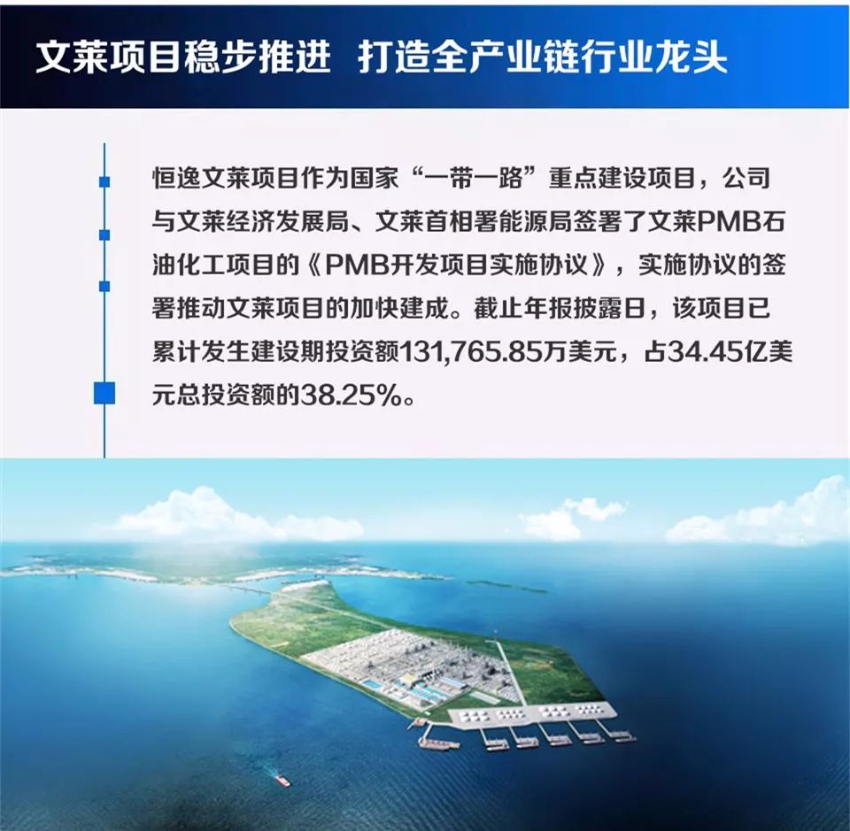 文莱炼化项目的建设标志着公司跨出国门,走向世界的重要里程碑。项目投产后,公司将有效突破原料瓶颈,实现国际化经营管理,实现“产业链一体化”战略布局,显著提高整体盈利能力和风险抵御能力。项目建成投产后,公司将借助文莱炼化项目实现“工艺一体化”,充分将文莱炼化项目中的产品应用到公司其他产业链中,有望将文莱项目打造成全球新型智能炼厂的典范,极大增强公司产业链竞争能力。