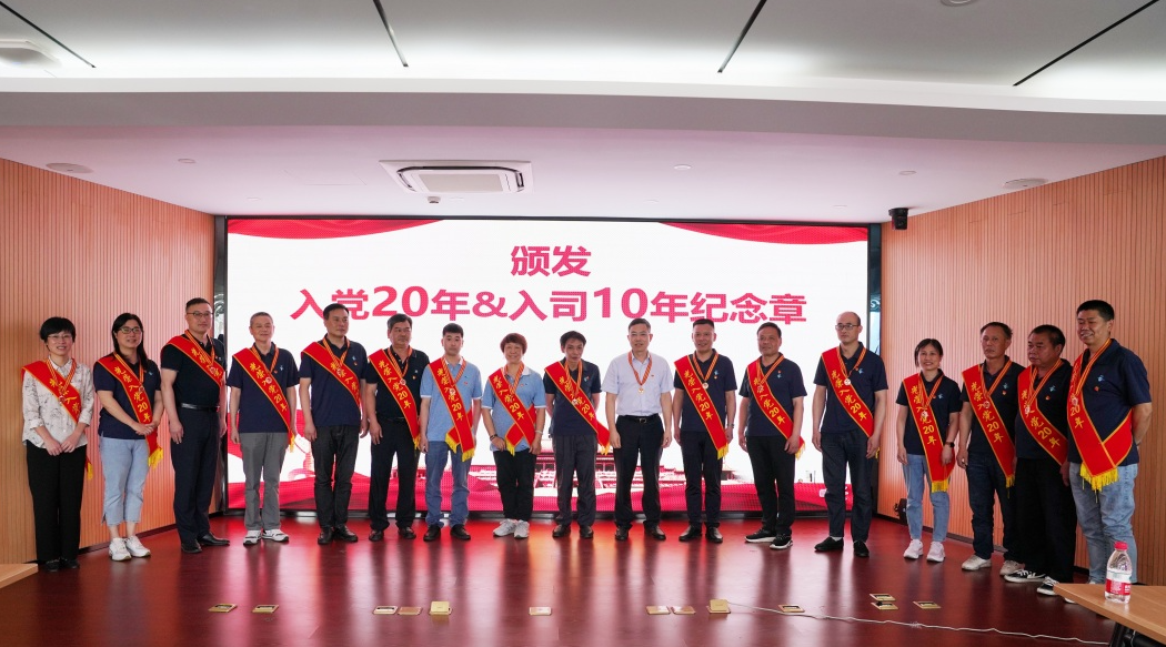 会议举行了入党20年、入司10年纪念章颁发仪式。据集团党委统计,组织关系在恒逸党组织的2002年7月1日前入党、2012年7月1日前入司的在职老党员、老员工(不含退休返聘人员)共有72位。为进一步激发广大共产党员爱党、敬党、为党的事业不懈奋斗的热情和干劲,集团党委专门订制了纪念章。会上,方贤水为老党员、老员工代表颁发纪念章。