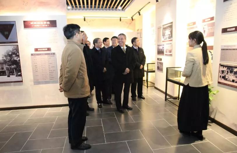 在捐赠仪式举行前,杭州师范大学党委书记陈春雷、校长杜卫、党委副书记王利琳和张志军陪同恒逸集团董事长邱建林一行参观了杭州师范大学校史馆,简要介绍了杭州师范大学的办学历程。