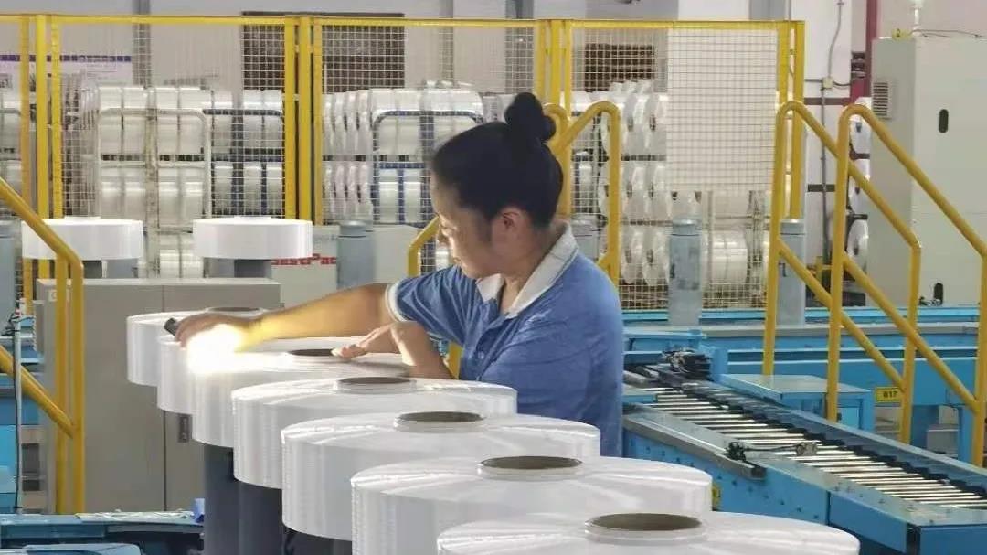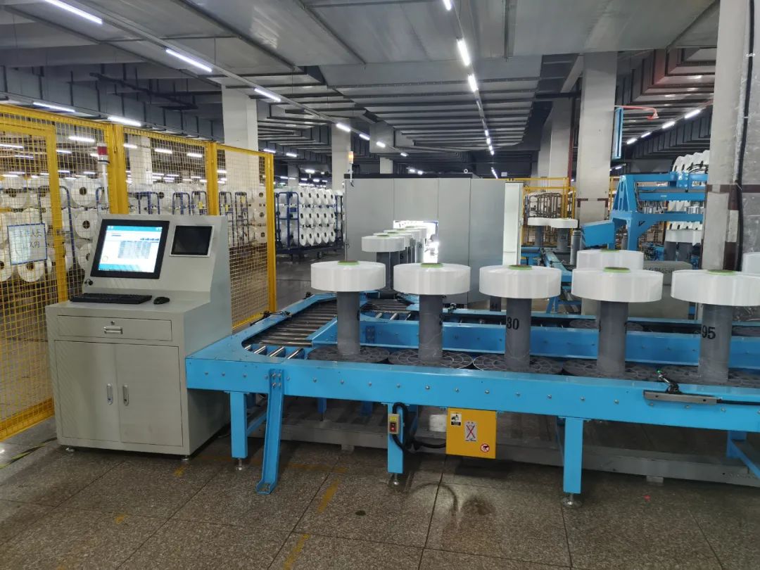 穿着短袖工装的双兔新材料外检工段负责人王礼娜,还在适应着不久前刚刚适配到丝锭生产线上的智能质检设备。她坐在流水线旁,看着自己面前被智能质检设备认定为“异常”的化纤丝锭,再进行一轮人工复检。查实异常的,送到异常产品区;被机器误检的,一按按钮,丝锭直接在流水线上被送到包装车间。