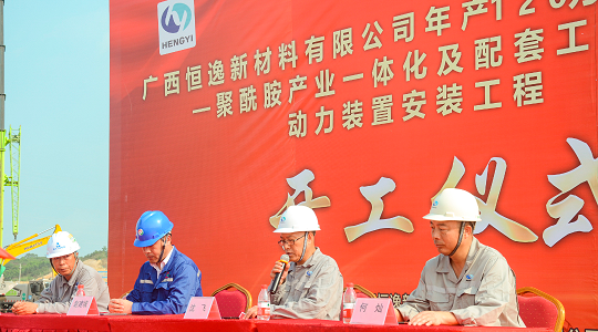 5月6日8点58分,广西恒逸新材料有限公司年产120万吨己内酰胺—聚酰胺产业一体化及配套工程项目动力装置安装工程正式开工。广西恒逸新材料有限公司总经理沈飞等公司领导及迪尔集团有限公司二公司、浙江泰宁建设工程管理咨询有限公司有关领导出席开工仪式。